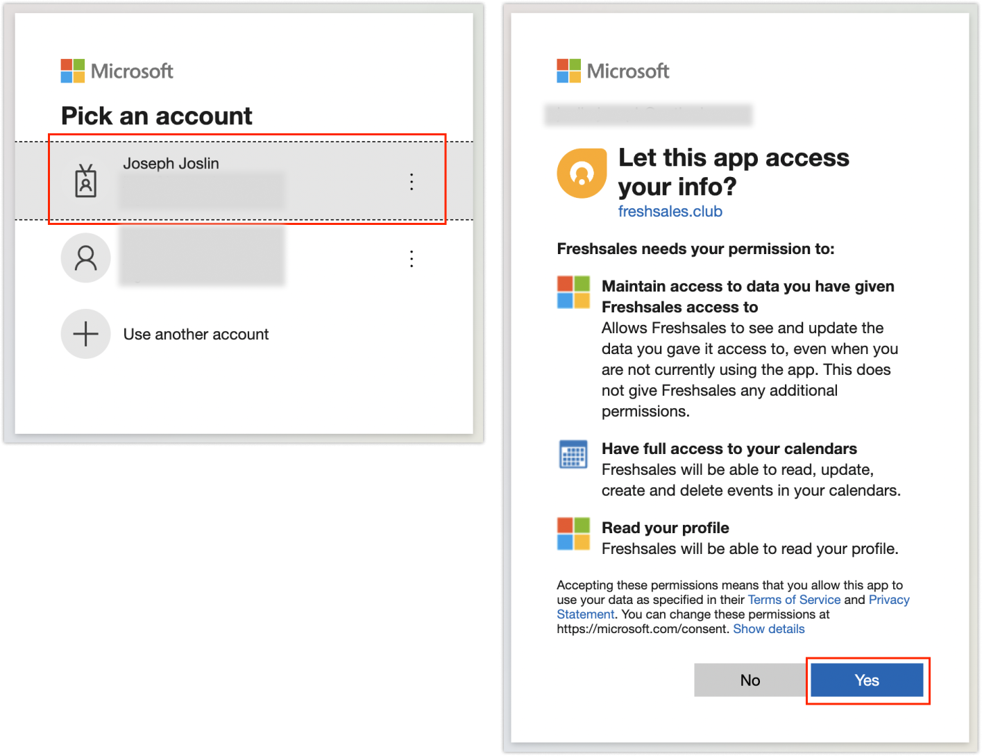 Você pode selecionar a conta da Microsoft com a qual deseja se conectar e conceder as permissões de acesso necessárias.