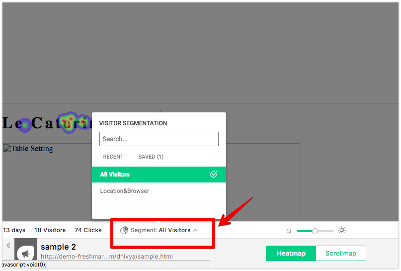 Os profissionais de marketing podem aplicar a segmentação aos mapas de calor. Desta forma, você pode filtrar os dados dos visitantes capturados. A funcionalidade de segmentação oferece suporte a várias opções de entrada ao mesmo tempo para filtrar dados.